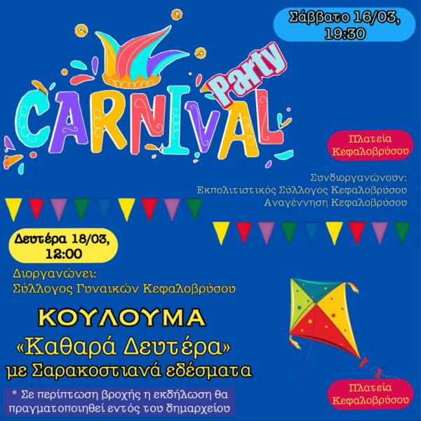 Αποκριάτικη Γιορτή που συνδιοργανώθηκε από τον Πολιτιστικό Σύλλογο Κεφαλοβρύσου και την Αναγέννηση Κεφαλοβρύσου, και την υποστήριξη του Δήμου Πωγωνίου και του Τοπικού Συμβουλίου Κεφαλοβρύσου, στις 16/03/2024.